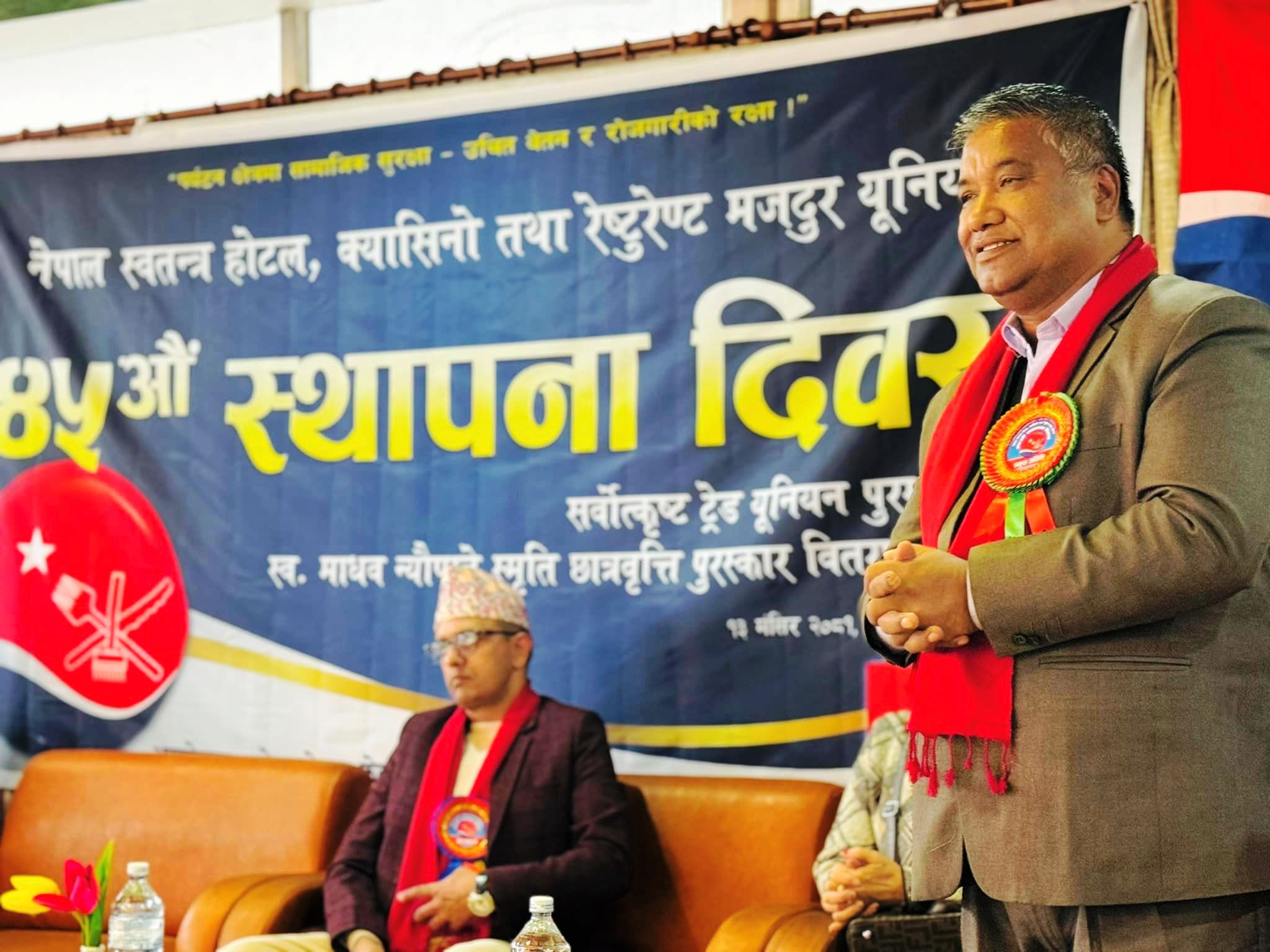 काठमाडौं । नेपाल ट्रेड यूनियन महासंघ (जिफन्ट) का अध्यक्ष विनोद श्रेष्ठले बदलिँदो समयअनुसार श्रम बजार नयाँ भएसँगै श्रम बजारमा हुने शोषणका रुप पनि नयाँ नयाँ हुँदै गएको बताएका छन् । महासंघको पर्यटन क्षेत्रको एक घटक नेपाल स्वतन्त्र होटल, क्यासिनो तथा रेष्टुरेण्ट मजदुर यूनियन (नेस्वहोमयू)को ४५ औं स्थापना दिवसका अवसरमा सर्वोत्कृष्ट ट्रेड यूनियन पुरस्कार र माधव न्यौपाने स्मृति छात्रवृत्ति पुरस्कार प्रदान गर्दै अध्यक्ष श्रेष्ठले आउटसोर्स लगायतका नाममा बजारमा नयाँ रुप र समस्या उदय भएको बताए ।
