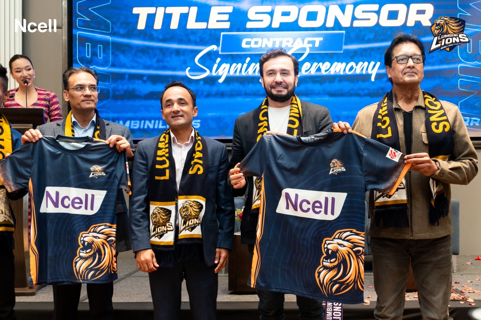 उक्त कार्यक्रममा मुख्य प्रायोजन सम्बन्धमा लुम्बिनी लायन्सका अध्यक्ष ईश्वर जि.सी र एनसेलका प्रमुख कार्यकारी अधिकृत तथा प्रबन्ध निर्देशक जाब्बोर कायुमोभले हस्ताक्षर गरेका छन् । साथै कार्यक्रममा लुम्बिनी लायन्सले एनपीएलमा लगाउने जर्सी पनि सार्वजनिक गरिएको थियो ।