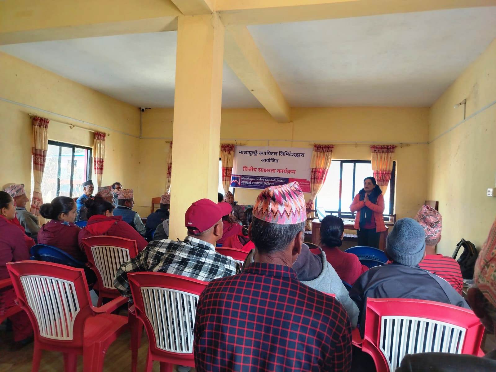 सो वित्तीय साक्षरता, सचेतना र घरदैलो कार्यक्रम, वडा नंः ४, घाचोक माछापुच्छ्रे बैंक बगर शाखाका शाखा प्रबन्धक उज्जवल घिमिरे तथा माछापुच्छ्रे बैंक लिमिटेडका गण्डकी प्रदेशका क्लस्टर प्रमुख जीवन बहादुर कार्कीको समन्वयमा सम्पन्न भएको हो । उतm कायक्रममा वडा नंः ३ का वडा अध्यक्ष हरिश्चन्द्र लम्साल तथा वडा नंः ४ का वडा अध्यक्ष मधुसुधन अधिकारीसमेत उपस्थित थिए भने क्यापिटलका तर्फबाट सञ्चालन प्रमुख करुना थापा तथा निक्षेप सदस्य विभागका कर्मचारी कोपिला पौडेल उपस्थित थिए ।