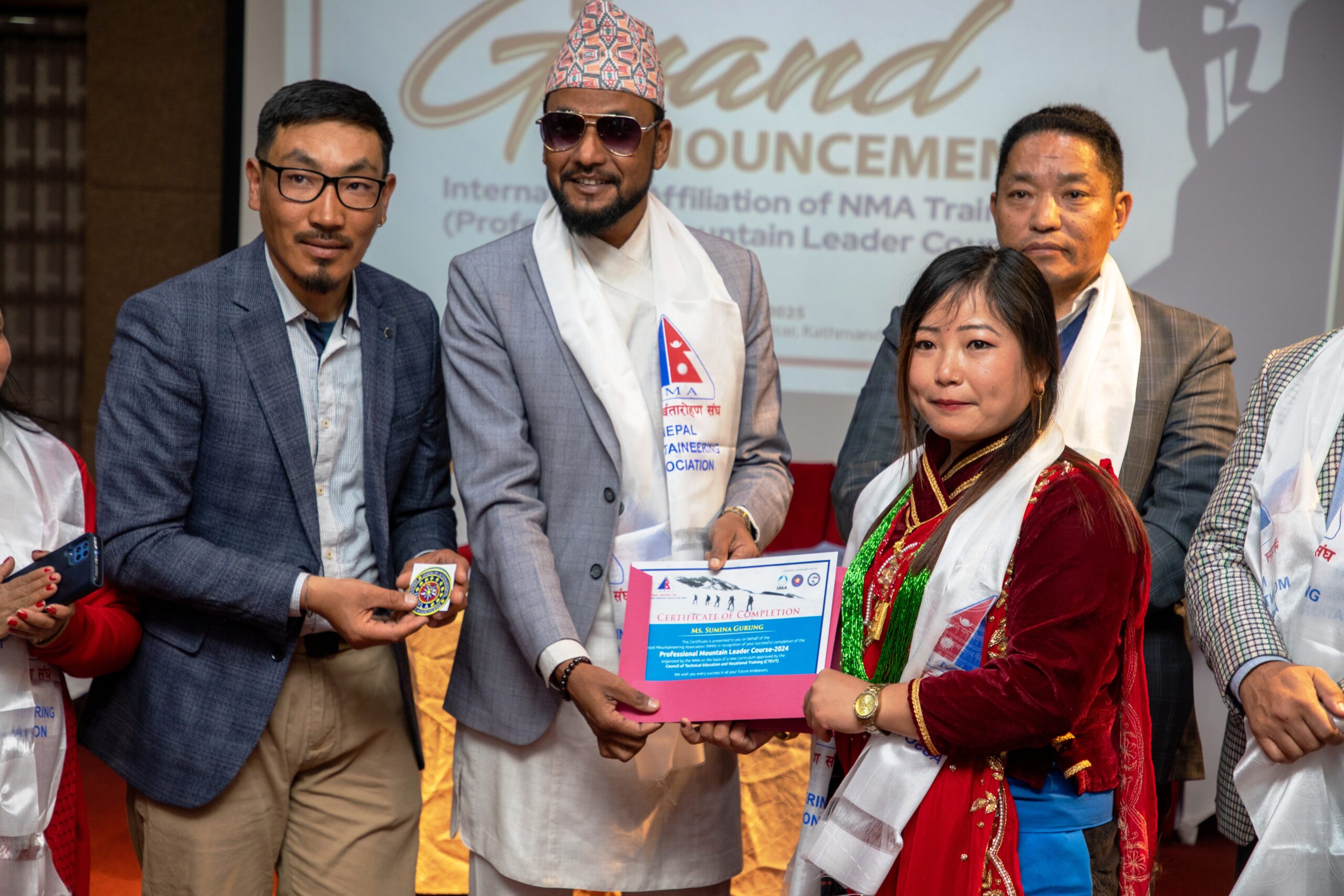 Honorable State Minister for Culture, Tourism, and Civil Aviation (MoCTCA), Arun Kumar Chaudhary, officially announced the international affiliation of NMA’s training and the new curriculum for PMG and PML during an event held at Aranya Boutique Hotel in Nagpokhari, Naxal.