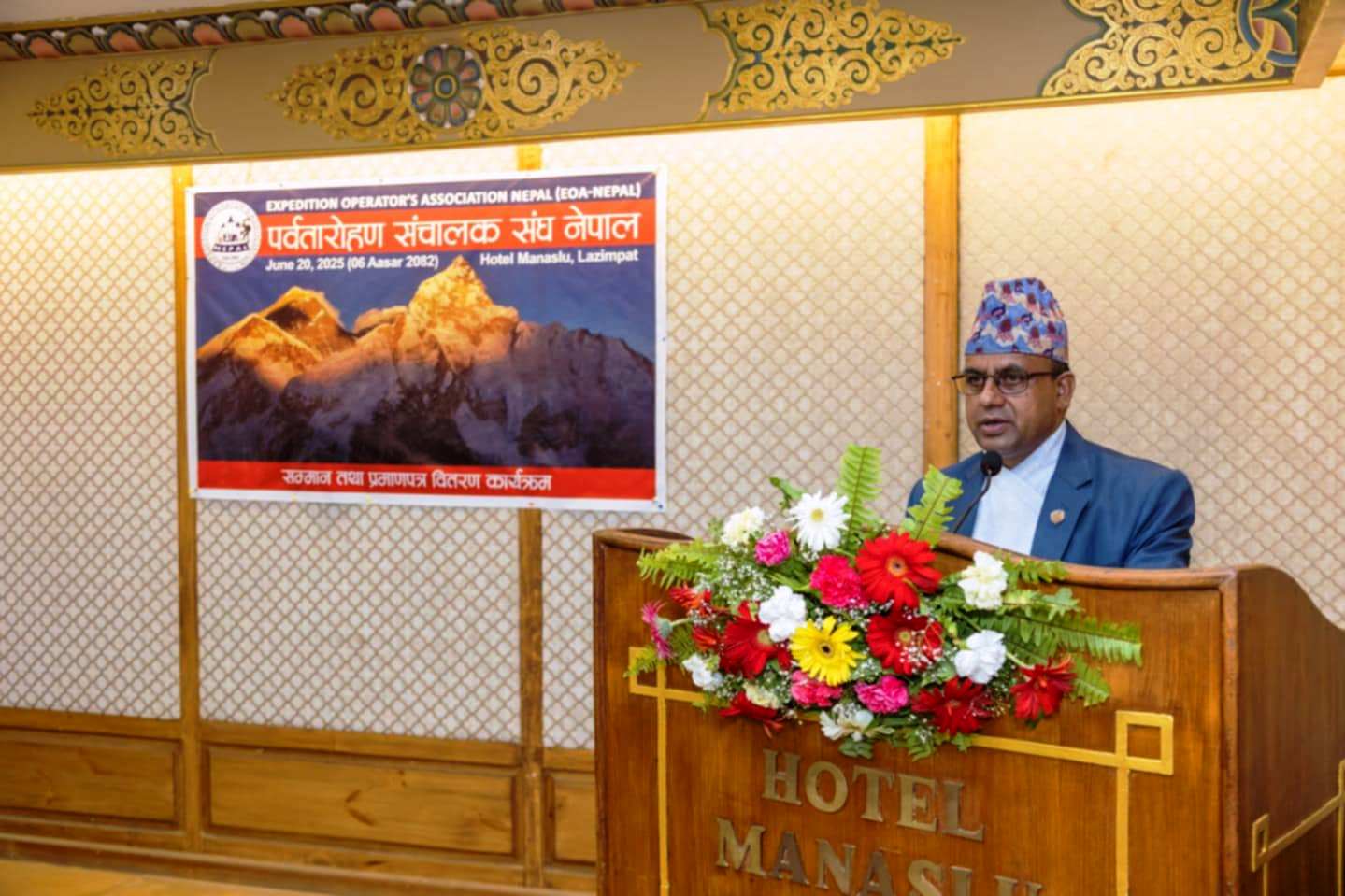 साे अवसरमा संघका अध्यक्ष डम्बर पराजुलीले भने, ‘यस संस्थाको सक्रिय एवं चुस्त समन्वयका कारण पर्वतारोहण गतिविधिहरु संचालनबापत राज्यकोषमा प्रत्यक्षरुपमा सन् २०२५ को वसन्त ऋतुमा रु. ८० करोडभन्दा बढी राजश्व संकलन हुनु पनि हामीहरु सबैका लागि सन्तोषको विषय रहेको हामी स्मरण गराउँदछौ । हामी पर्वतारोहण संचालकहरुले माथि उल्लेखित राज्यकोषमा प्रत्यक्ष दाखिल गरेको राजश्व मात्र होईन । हामीले पर्वतारोहण संचालन गर्दा उपभोग गरेको हवाई तथा स्थल यातायात, होटल, रेष्टुरेण्ट, आरोहण मार्गमा खाने बस्नको लागि गरिएको खर्च, कम्पनीले आय–ब्याय बापतको राजश्व, मूल्य अभिवृद्धि कर लगायत अन्य प्रत्यक्ष/अप्रत्यक्ष खर्चहरु र उक्त खर्चबापत बजार चलायमान गर्न पुर्याएको योगदानलाई पनि पुनः स्मरण गर्न चाहन्छौं । विगतमा कोभिडको समयमा विदेशी मुद्रा संचितिमा आएर विदेशमा रहेको विदेशी मुद्राको संचितिबाट काम चलाउनुपरेको अवस्था स्मरण गर्दै, कोभिडपश्चात जब पर्यटन ब्यवसाय आफ्नो लयमा फर्कने क्रममा विदेशी मुद्राको संचितिको बढ्दो अंक रहेको हामी सबैमा स्मरण गराउँदछौं ।’