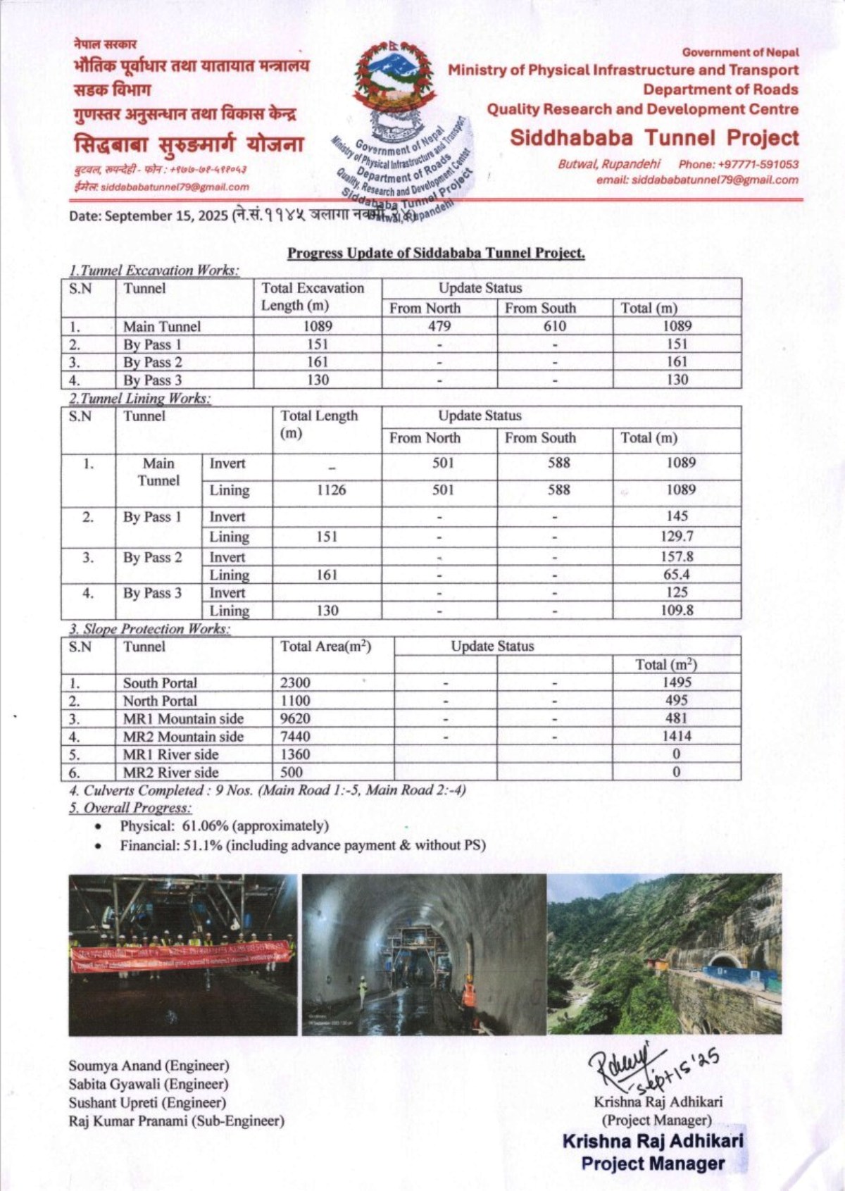काठमाडौं । सिद्धबाबा सुरुङमार्गको काम साढे ६१ प्रतिशत सकिएको छ । आयोजना कार्यालयले दिएको जानकारीअनुसार भौतिक प्रगती ६१ दशमलव ६ प्रतिशत र वित्तीय प्रगती ५१.१ प्रतिशत रहेको छ ।