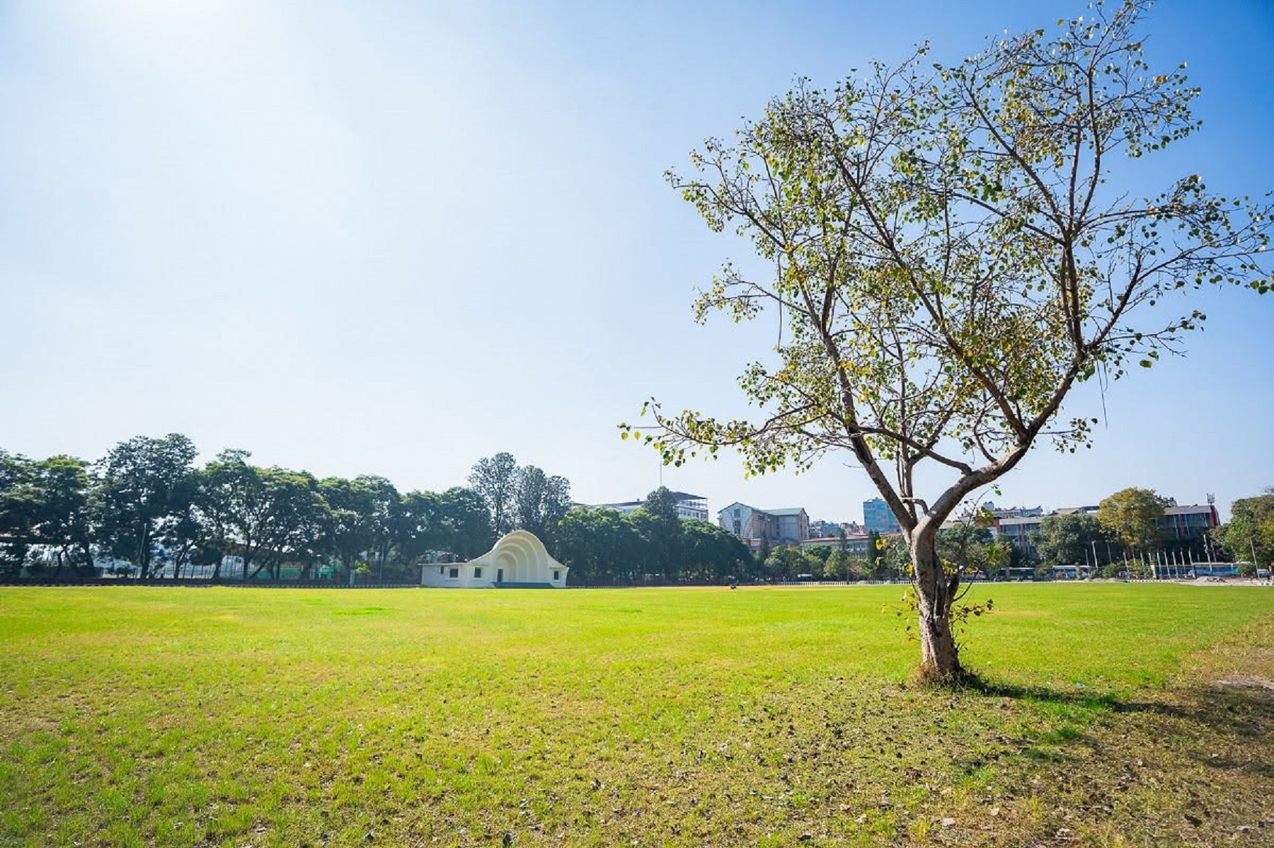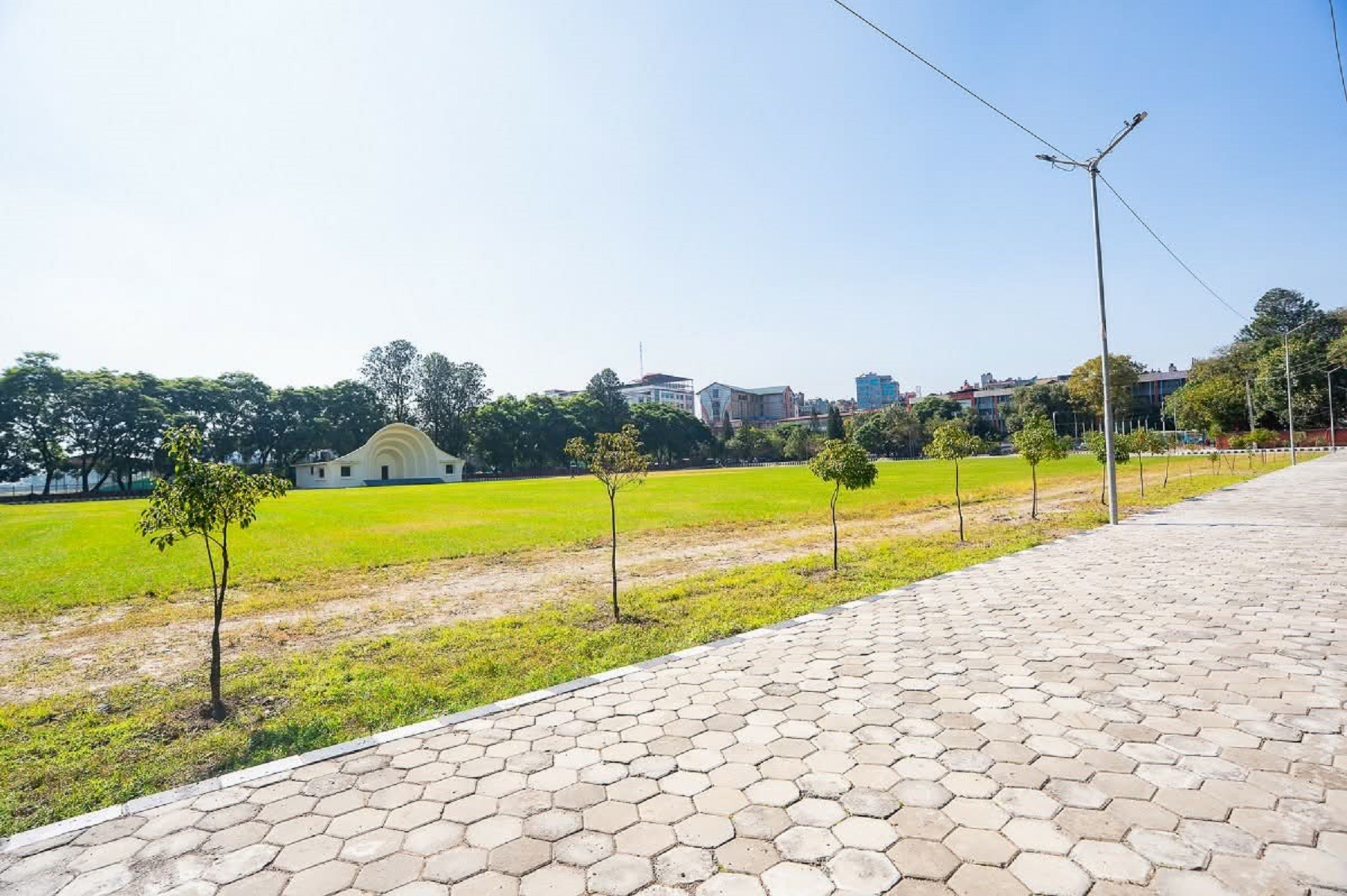 प्राकृतिक दुबोसहितको घाँसे चउर, खुला मञ्चको अहिलेको अवस्था हो । खुला मञ्चको चउरमा १४ हजार ६ सय वर्गमिटर क्षेत्रफलमा प्राकृतिक दुबो रोपिएको छ । उबडखावड मिलाइएको ठाउँमा नेपाली दुबो रोपेपछि चउर लोभलाग्दो भएको छ । महानगरपालिकाको सार्वजनिक निर्माण विभागले कार्यान्वयन गरिरहेको, खेलकुद पूर्वाधारको मर्मत, सम्भार, सुधार तथा स्तरोन्नति गर्ने कार्यक्रमअन्तर्गत चउरमा मलिलो माटो राखेर दुबो रोप्ने काम भएको हो ।